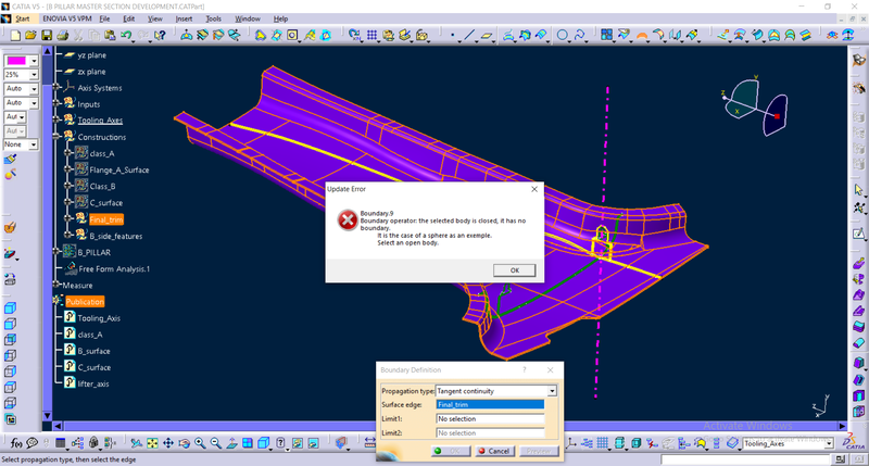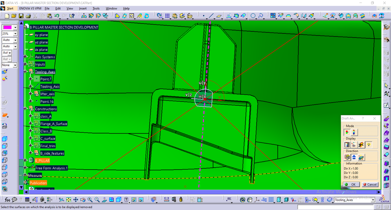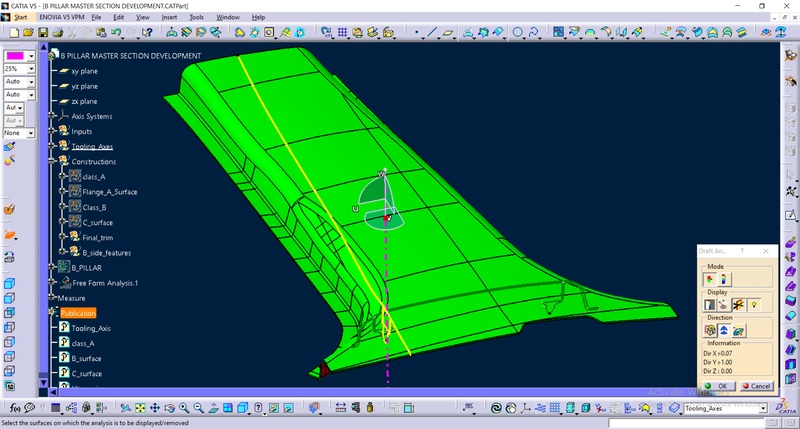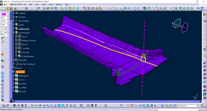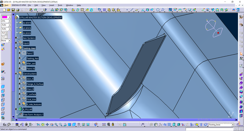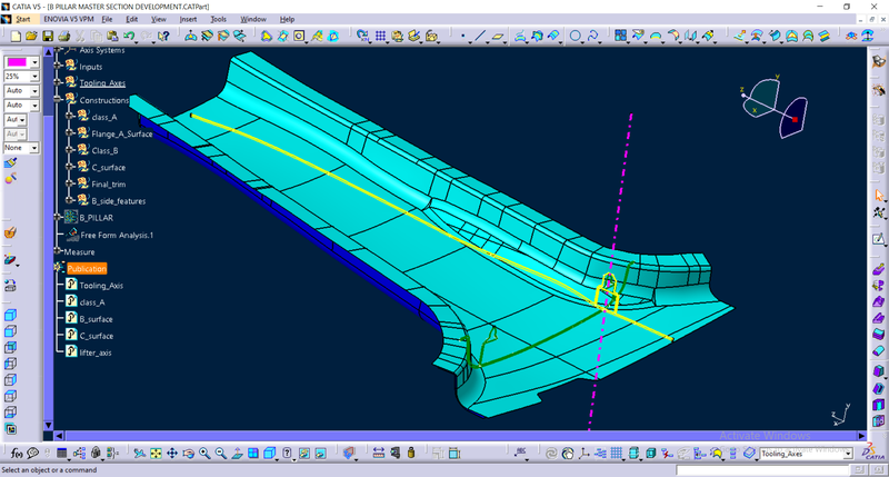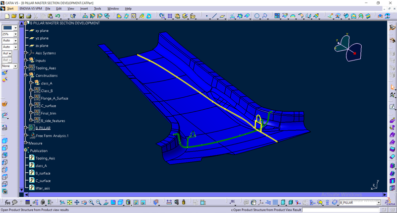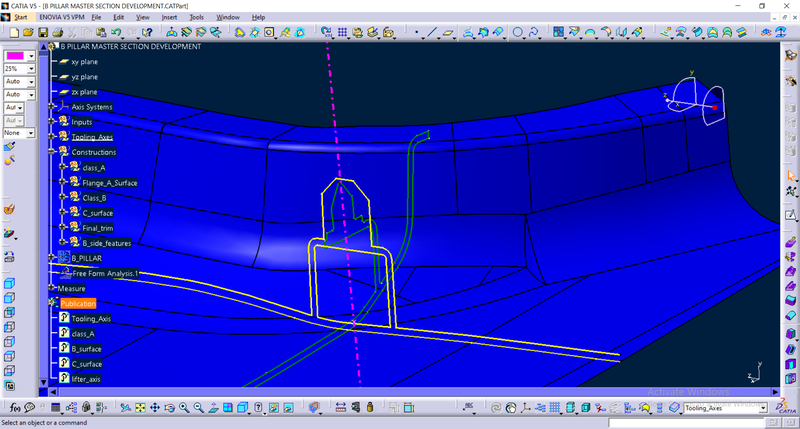 In Automotive industry there will be a dedicated team who will perform the aesthetic designing of various components including the whole vehicle. They will create various concept sketches after ideation. After that, they will also create a Class A surface of the product. This class A surface is then passed over to the NPD CAD team. They will initially inspect the Class A surface in order to check if the design is manufacturable or if it is following the engineering principles. If there are any issues about the design, they will contact the product design team and will ask to modify the Class A surface in order to solve the problem. Here I received the Class A surface of the B pillar interior plastic trim with master section as shown below.