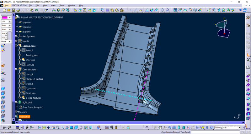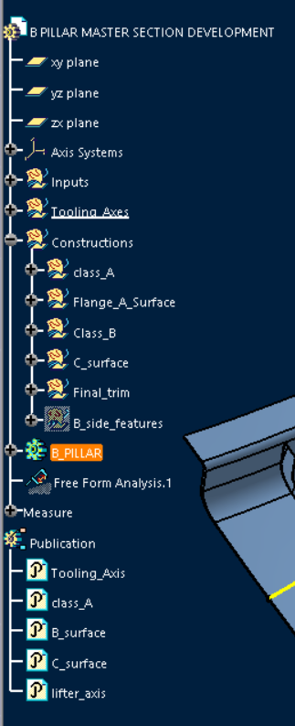 To develop Class A surface and master section input of a car interior B pillar provided into a functional product design following the OEM design standards using CATIA V5 Surface workbench following the injection moulding principles.
