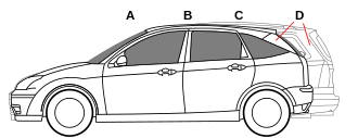 Pillars are the vertical or near vertical supports of a car's window area or greenhouse, designated respectively as the A, B, C or (in larger cars) D-pillar, moving from front to rear, in profile view.
