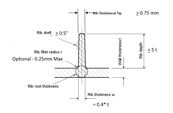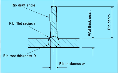 Ribs provide a means to economical stiffness and strength in moulded parts without increasing overall wall thickness. They also facilitate:
